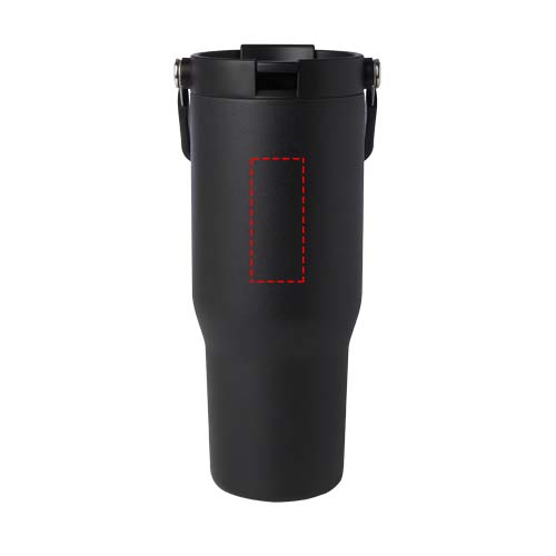 De Bronx tumbler van 900 ml is gemaakt van RCS-gecertificeerd roestvrij staal en heeft een dubbelwandige vacuümconstructie met koperisolatie. Houdt dranken tot 48 uur koud of tot 12 uur warm. De deksel heeft een dubbele functie met een inklapbaar rietje voor gemakkelijk drinken, en een flip-top opening met een handige inklapbare draaglus voor moeiteloos meenemen. Past in de meeste bekerhouders van auto’s. Verpakt in een gerecyclede kartonnen geschenkverpakking.