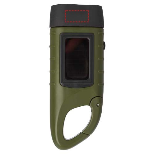 Helios zaklamp met zonnedynamo van gerecycled plastic met karabijnhaak