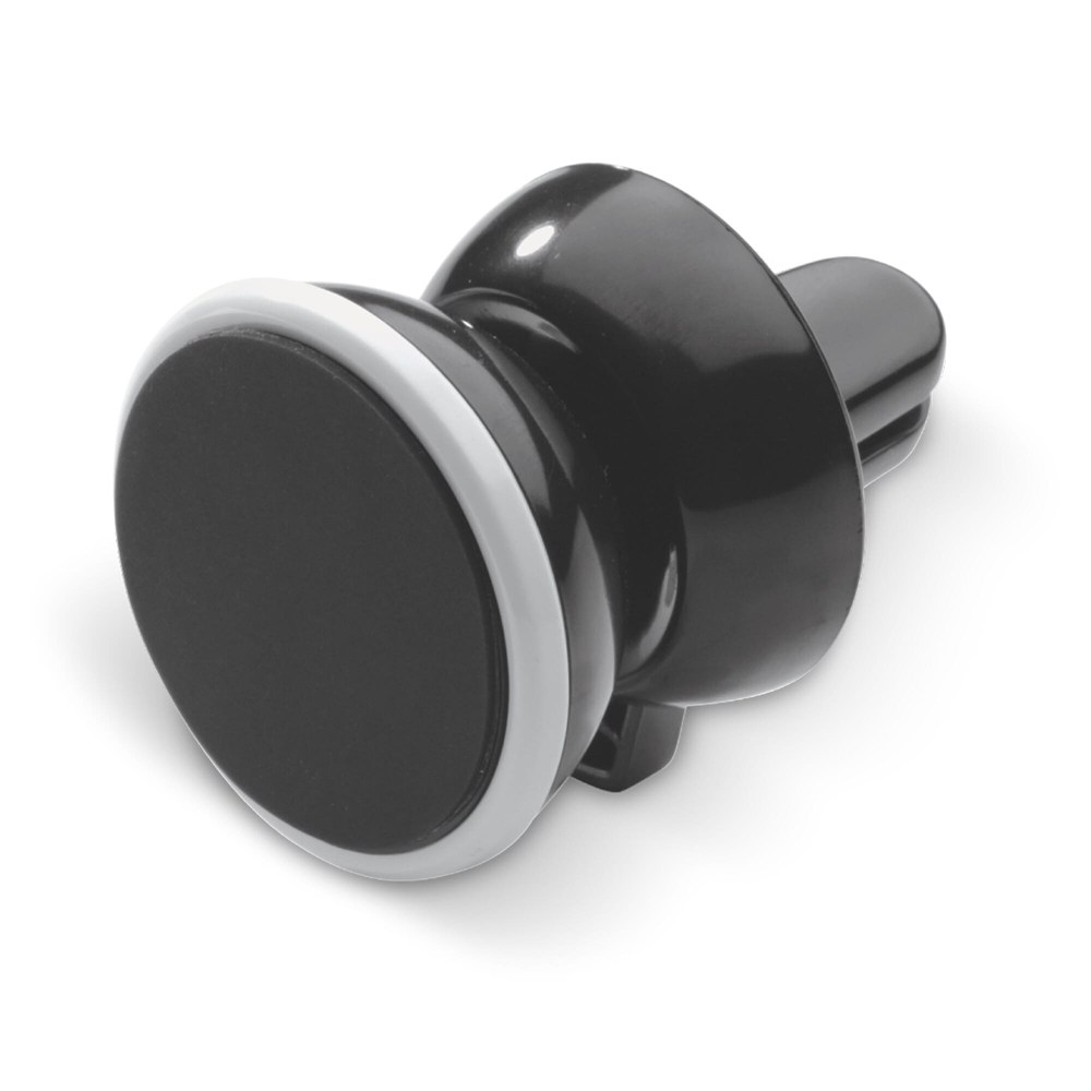 Magnetische houder die bestaat uit twee delen: een metalen deel met sticker voor achter op de telefoon en een deel voor in de auto. Zo bouw is het ventilatierooster in de auto in een handomdraai om te bouwen tot een carkit.
