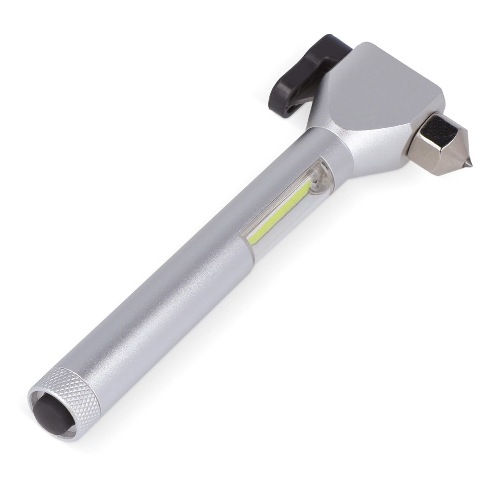 Noodhamer die is uitgerust met een scherpe punt om een autoraam te breken. Verder heeft deze tool een gordelsnijder, een magneet en een COB-lamp. Deze veiligheidshamer mag niet in de auto ontbreken. De magneet kan eenvoudig op metalen oppervlaktes vastgemaakt worden.