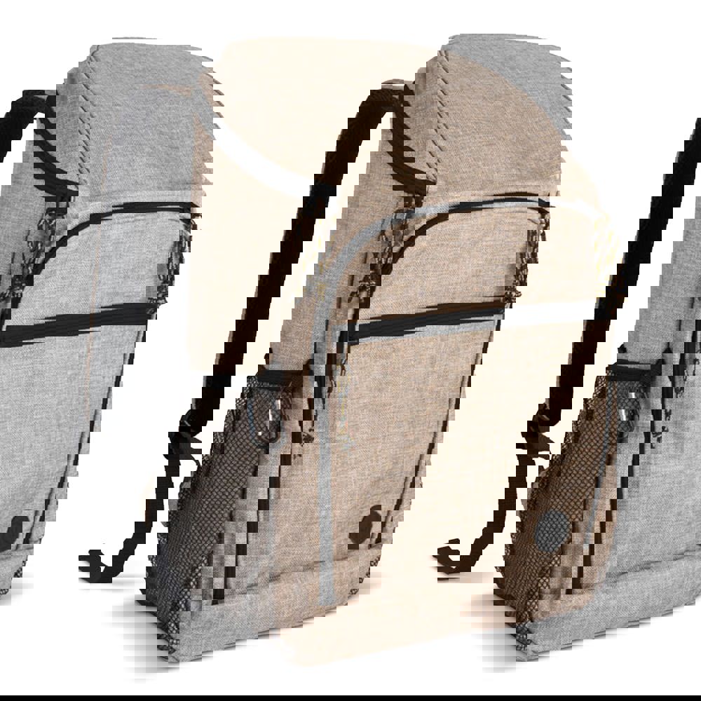 Een luxe en sportieve koelrugzak in rPET materiaal. De rugzak is perfect te gebruiken voor een picknick in het veld of in het bos. Maar ook als je een lange wandeling gaat maken. De tas heeft naast het grote koelvak, twee voorvakken en netzakken aan de zijkant, één voorzien van een karabijnhaak. De rugkant is voorzien van gewatteerd, comfortabel materiaal voor meer draagcomfort. De schouderbanden zijn uiteraard verstelbaar. De tas is is gemaakt van gerecyclede PET-flessen.