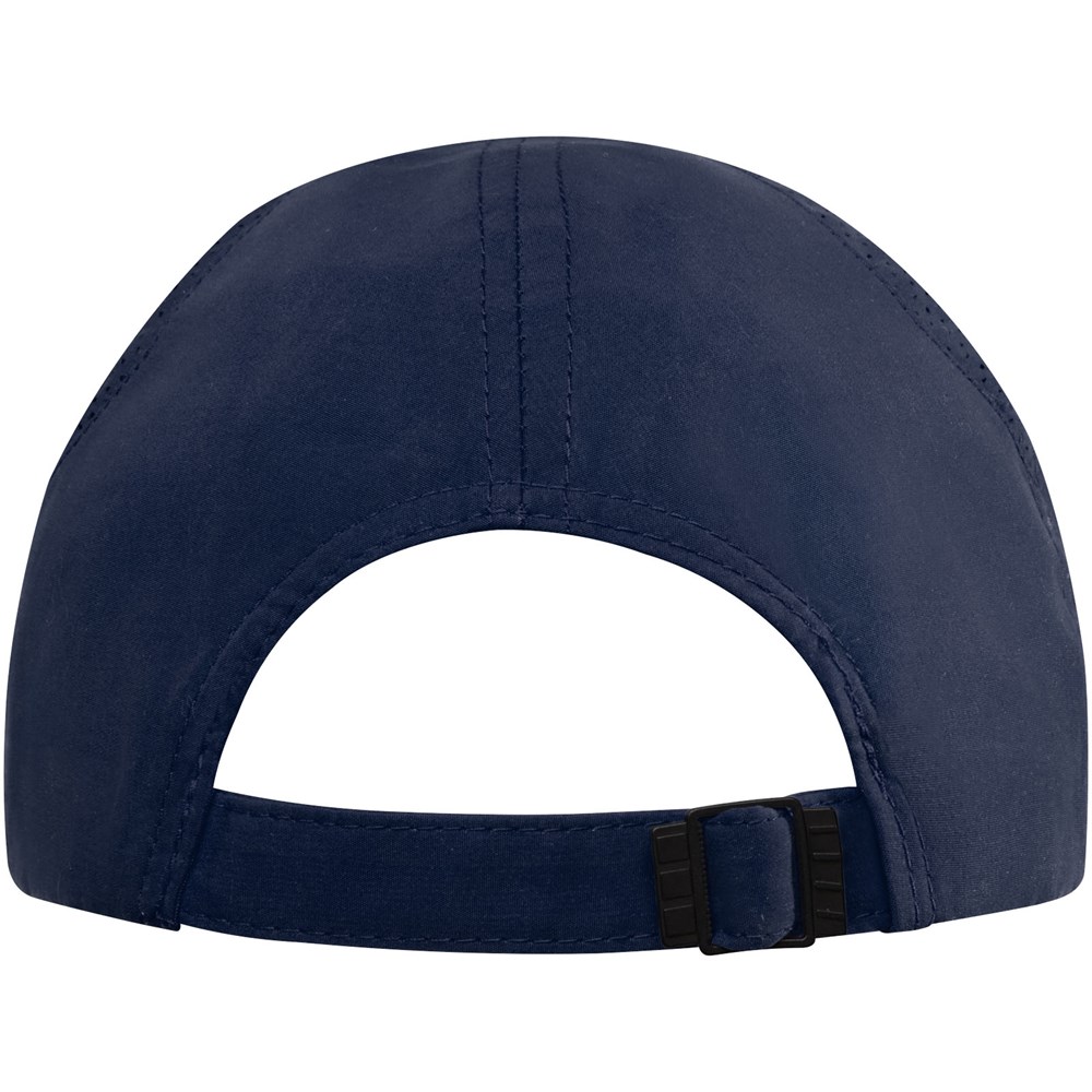 De Morion 6 panel cool fit cap is gemaakt van 110 g/m² GRS-gecertificeerd gerecycled polyester microvezel en heeft een voorgebogen vizier met een sandwichontwerp, wat een klassieke touch toevoegt. De achterpanelen hebben lasergesneden gaten voor optimale ventilatie, zodat je koel en comfortabel blijft tijdens buitenactiviteiten. Ontworpen voor een comfortabele pasvorm met een hoofdomtrek van 58 cm. De metalen gespsluiting kan moeiteloos worden versteld, voor de perfecte pasvorm. De GRS-certificering zorgt voor een 100% gecertificeerde toeleveringsketen, van grondstof tot onze druktechnieken, waardoor dit een duurzamere keuze is.