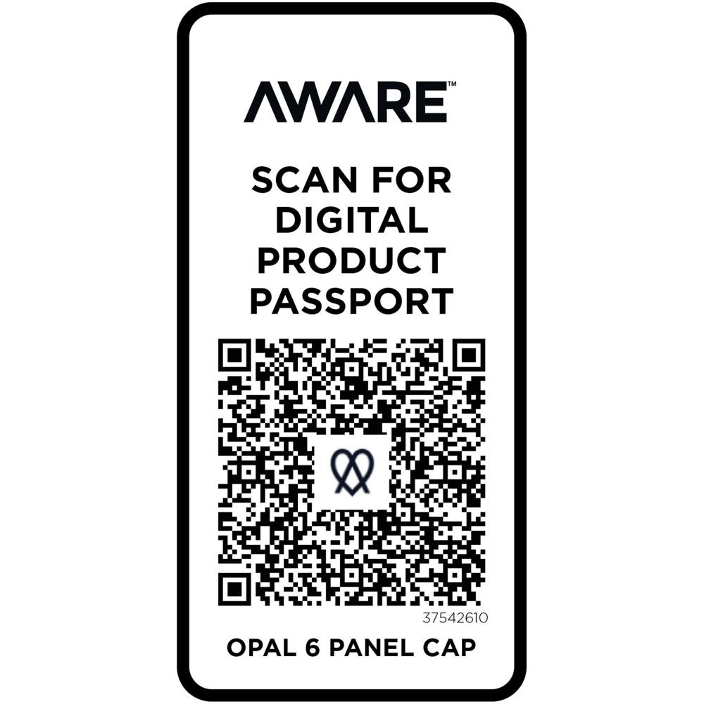 De Opal 6 panel cap is gemaakt van 70% gerecycled katoen en 30% gerecycled polyester. Hij is ontworpen voor een comfortabele pasvorm met een hoofdomtrek van 58 cm en de metalen gespsluiting zorgt voor eenvoudige, veilige aanpassingen. De cap bevat Cyclo® gerecyclede vezels waarbij voorgesorteerd afval wordt gebruikt dat de kleur van het garen bepaalt. Deze vezels verminderen niet alleen de vraag naar nieuwe grondstoffen, maar tonen ook een engagement voor een circulair leven, waarbij ze de essentie belichamen van het verminderen van afval en het bevorderen van een gesloten kringloopsysteem. Elke cap wordt ook geleverd met een Aware™ tracer. Met deze innovatieve functie kunnen gebruikers de oorsprong en de reis van hun artikel volgen via een QR-code, waardoor de transparantie in de toeleveringsketen wordt vergroot en er een sterkere band is tussen het product en het productieproces.