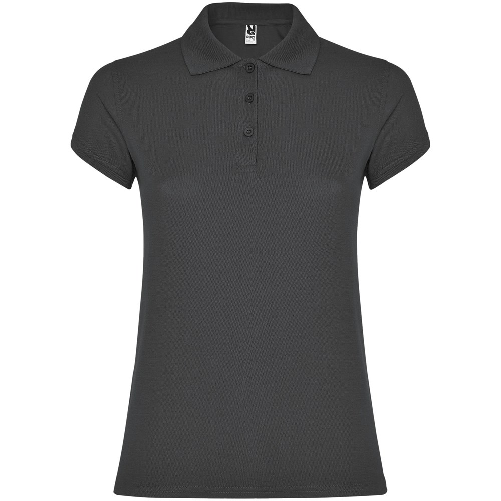 Poloshirt met korte mouwen voor dames. Versterkte bedekte naden in de binnenkant van de kraag. 1x1 geribde kraag en manchetten. Zijnaden en aansluitende snit. Smalle sluiting met drie knopen. Zijsplitten. Verwijderbaar etiket. Het model is 179 cm en draagt maat S.