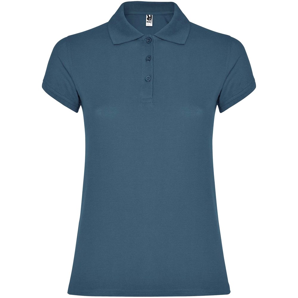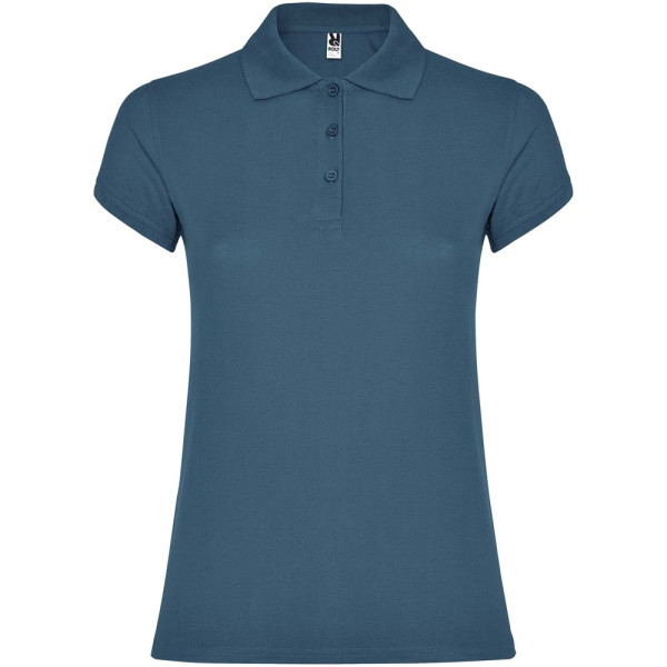 Poloshirt met korte mouwen voor dames. Versterkte bedekte naden in de binnenkant van de kraag. 1x1 geribde kraag en manchetten. Zijnaden en aansluitende snit. Smalle sluiting met drie knopen. Zijsplitten. Verwijderbaar etiket. Het model is 179 cm en draagt maat S.